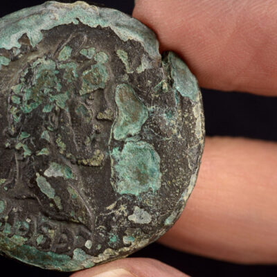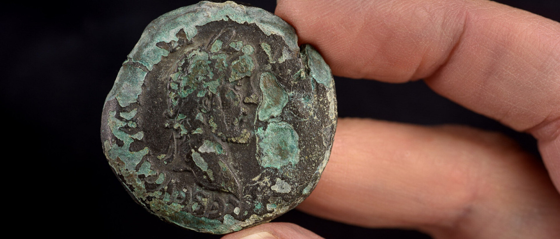 Antoninus Pius császár uralkodása idején, a 2. században verték a bronzpénzt, melyet az Izraeli Régészeti Hatóság (IAA) víz alatti régészeti egysége fedezett fel a tengerfenéken egy felmérés során. Az érmén a római Luna holdistennő képe alatt a rák csillagjegy található, másik oldalán pedig a 138-tól 161-ig uralkodó Antoninus Pius római császár képmása.