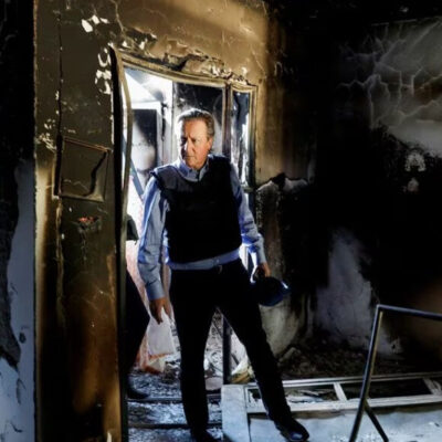 David Cameron, az Egyesült Királyság külügyminisztere, volt brit miniszterelnök ma Eli Kohen izraeli külügyminiszterrel együtt megtekintette a Hamász iszlamista terrorszervezet október 7-i terrortámadásában legsúlyosabban érintett Beeri kibucot.