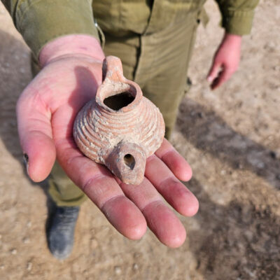 Egy kiváló állapotban megmaradt, Bizánc-kori olajlámpást talált két tartalékos izraeli katona, Nathaniel Melchior és Alon Segev. Felelős állampolgárként természetesen értesítették az Israel Antiquities Authority-t, azaz az Izraeli Régészeti Hatóságot, amelynek szakemberei megállapították, hogy az alakjáról úgynevezett „szandál-lámpásnak” nevezett mécsesről van szó, amelyet annak idején öntőforma segítségével, agyagból gyártottak, és a mai Izrael déli tájegységére volt jellemző.