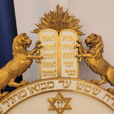 Borítókép: az egykori tóraszekrény dísze a tokaji zsinagógából