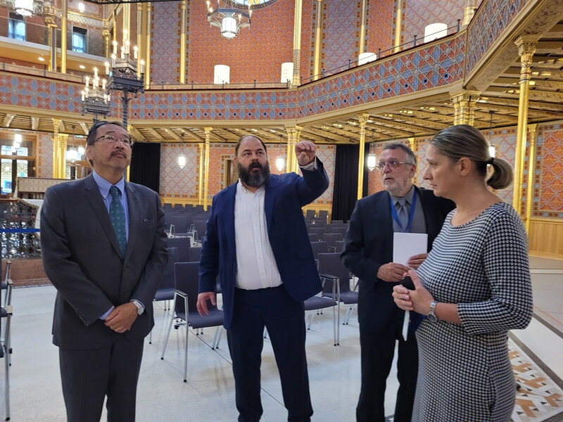 A nagykövetet a Mazsihisz elnökén kívül Kiss Henriett, a Rumbach vezetője és Radnóti Zoltán főrabbi vezette körbe a zsinagógában.