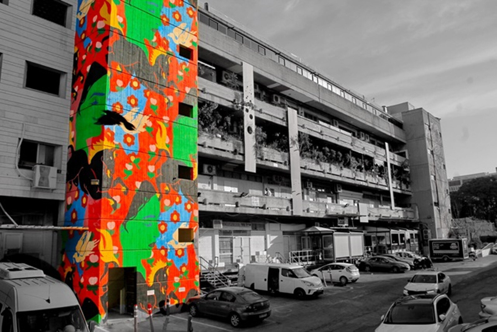 A meghívott külföldi művészekkel kiegészülve az izraeli művész csapatok munkája nyomán most a Talpiyotban harminc épület színei kiabálnak a szürkületre.