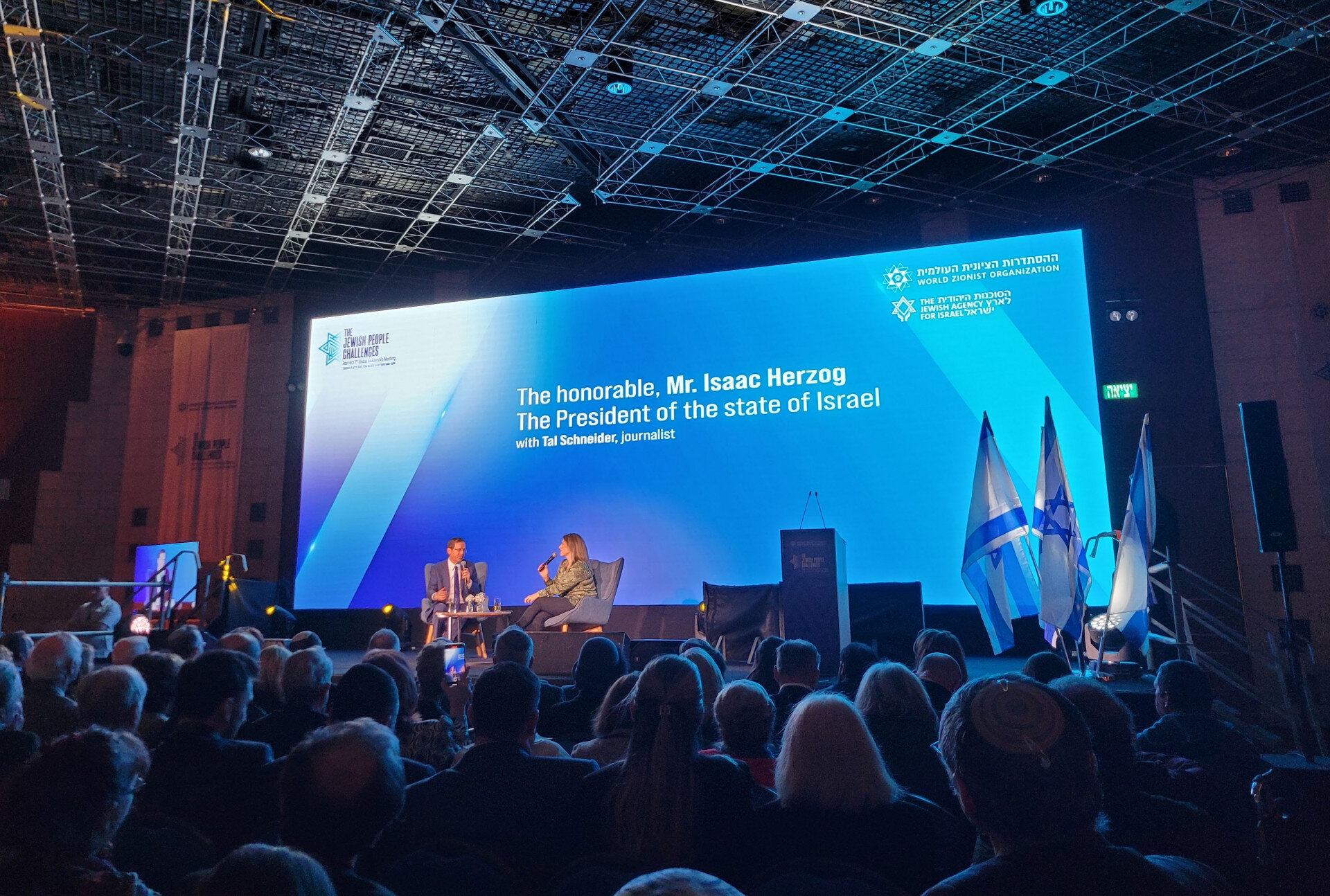 A Cionista Világszervezet (World Zionist Organization – WZO) Jeruzsálemben tartott nemzetközi nagygyűlésének kedd esti vendége Jichák Hercog volt, aki Tal Schneider újságíróval folytatott csaknem egy órás pódiumbeszélgetést  arról, hogy október hetedike óta milyen kihívásokkal néz szembe a Zsidó Állam.