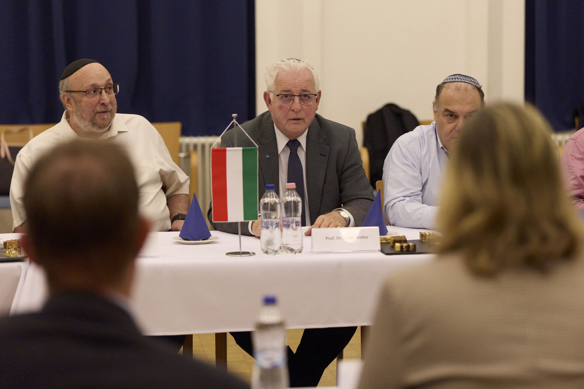 A Mazsihisz elnöke a delegáció előtt röviden vázolta a magyar zsidó közösségek életét a holokauszt előtt és után, majd hangsúlyozta: Európában Magyarország a legbékésebb hely abból a szempontból, hogy nálunk mindenki szabadon megélheti zsidóságát. Hozzátette: ez részint a magyar kormány politikájának, másrészt a kormányzat és a magyar zsidó közösség közötti, jó együttműködésnek köszönhető. Dr. Grósz Andor kiemelte: a Mazsihisz nem kíván aktuálpolitikai ügyekben megnyilvánulni, ám a felekezet vezetése felemeli a hangját minden olyan esetben, amikor a zsidóságot sérelem éri. Elhangzott: a Mazsihisz minden rendelkezésre álló eszközzel támogatja azt a magyar külpolitikai irányvonalat, amely következetesen kiáll Izrael biztonsága és legitimációja mellett.