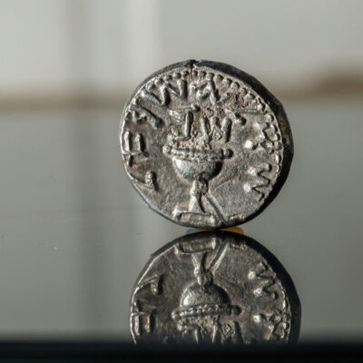 A pénzérmén egy serleg látható és az „izraeli sékel” jelentésű óhéber felirat. Régészek szerint a fémpénzt a templomban tartott ezüstkészletekből verhették.