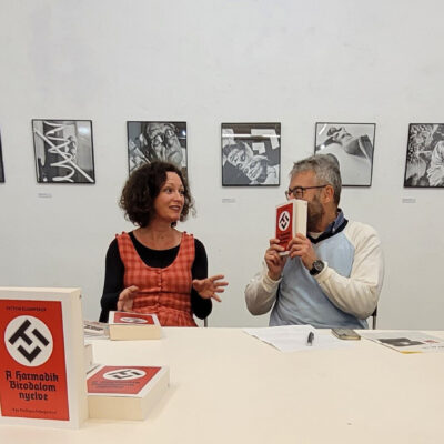 Maga a kötet azonban nem unalmas, sőt, az idei év egyik legizgalmasabb magyar nyelvű kiadványa, amelyet mindenkinek ajánlunk, aki arra kíváncsi: miképpen lehet lebutított politikai üzenetekkel tényleg elbutítani a közvéleményt. A bemutatón kiderült, hogy a Harmadik Birodalom nyelve egyszerre képes nevetséges és pokolian félelmetes lenni, ez a könyv tehát: kötelező irodalom!