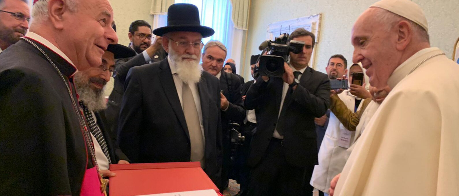 Avraham Steinberg rabbi és más vallási vezetők Ferenc pápának átadják az eutanáziát elítélő dokumentumot