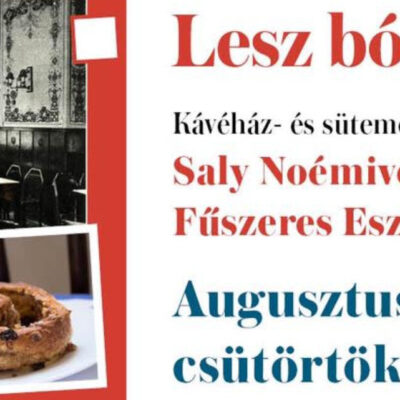 Lesz bólesz! – Kávéház- és süteménytörténet Saly Noémivel és Fűszeres Eszterrel 2022. augusztus 4-én, csütörtök délután 5 órakor a Csányi5-ben. Jegyek a helyszínen, valamint a jegy.hu oldalon kaphatók. Jegyár: 1 500 forint – BÓLESZKOSTOLÓVAL!