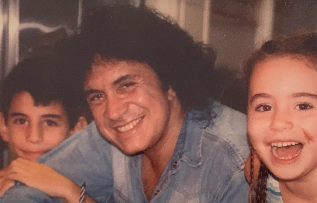 Illusztráció: Gene Simmons (a jellegzetes KISS-maszk nélkül) a gyermekeivel