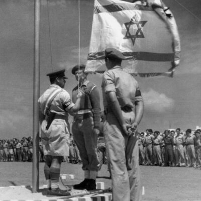 (Címlapkép: 1948 júniusában egy izraeli katona először húzza a magasba Izrael zászlaját)