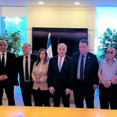 (Címlapkép: Jáír Lapid és a tárgyaló felek a találkozó végén. Forrás: Muhammad Majadele/Twitter)