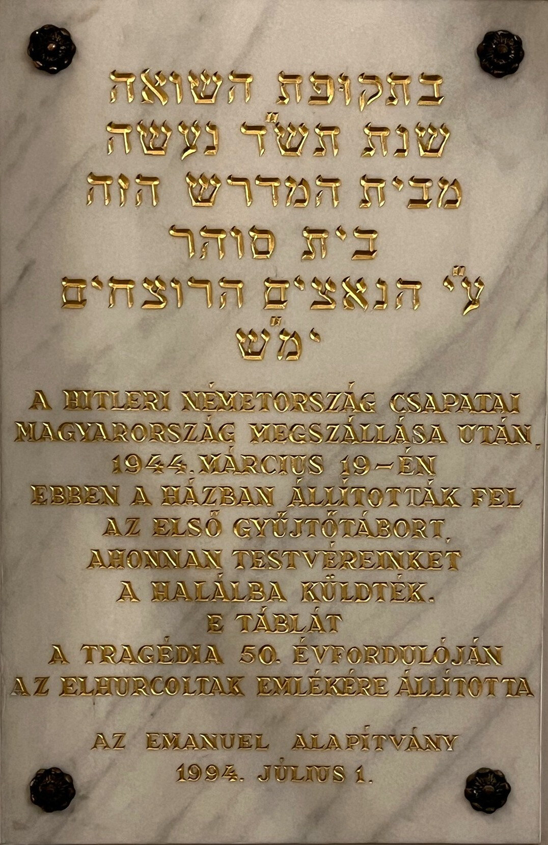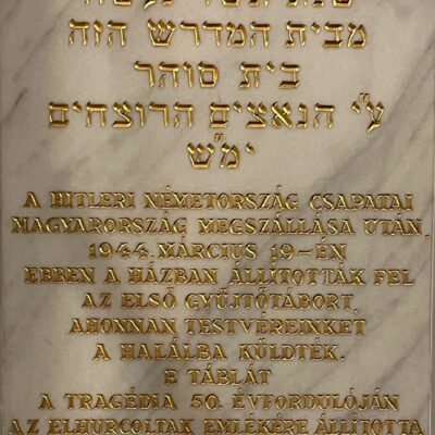 A táblát az innen elhurcoltak emlékére állította az Emanuel Alapítvány az épület előterében.