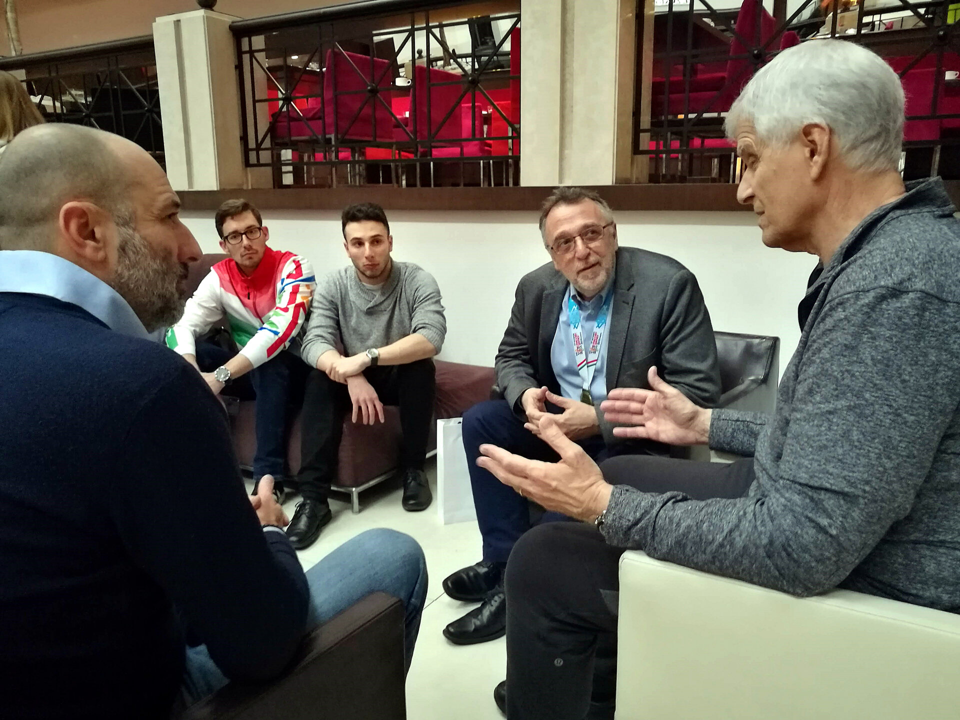 Heisler Andrással és Jusztin Ádámmal. A háttérben Békési Dániel és Pálmai Csaba