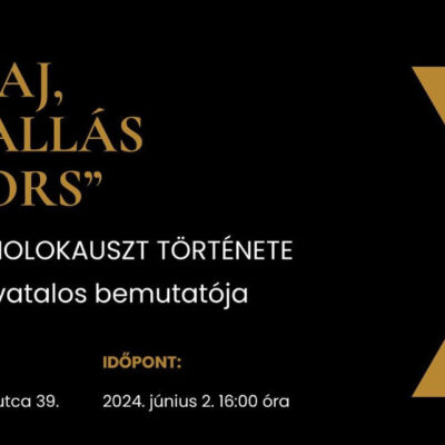 A Holocaust Dokumentációs Központ és Emlékgyűjtemény Közalapítvány tisztelettel meghívja Önt a „Más faj, más vallás, más sors” – A magyar holokauszt története című kötet hivatalos bemutatójára 2024. június 2-án, vasárnap délután 4 órára a Holokauszt Emlékközpontba. Pontos cím: Budapest IX. kerület, Páva utca 39.)