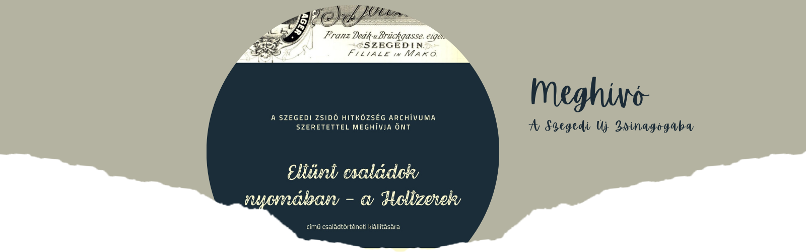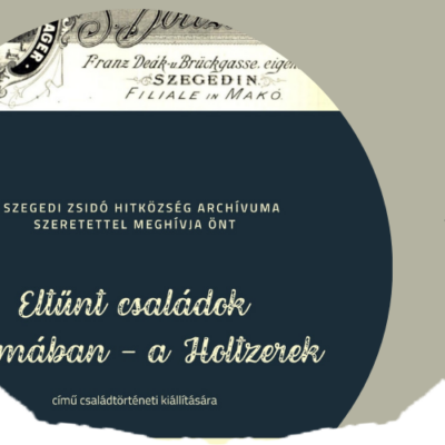 A Szegedi Zsidó Hitközség Archívuma szeretettel meghívja Önt az „Eltűnt családok nyomában – a Holtzerek” című családtörténeti kiállítására 2021. október 21. csütörtök délután 5 órára a Szegedi Új Zsinagóga kiállítótermébe