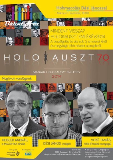 Dési János újságíró és meghívott vendégei minden érdeklődőt várnak 2014. március 1. szombaton, 18:30 órára a Bálint Házba a „Mindent vissza? – Magyar Holokauszt Emlékév” című izgalmasnak ígérkező beszélgetésre. Az esemény pontos címe: Budapest VI. ker., Révay u. 16.)