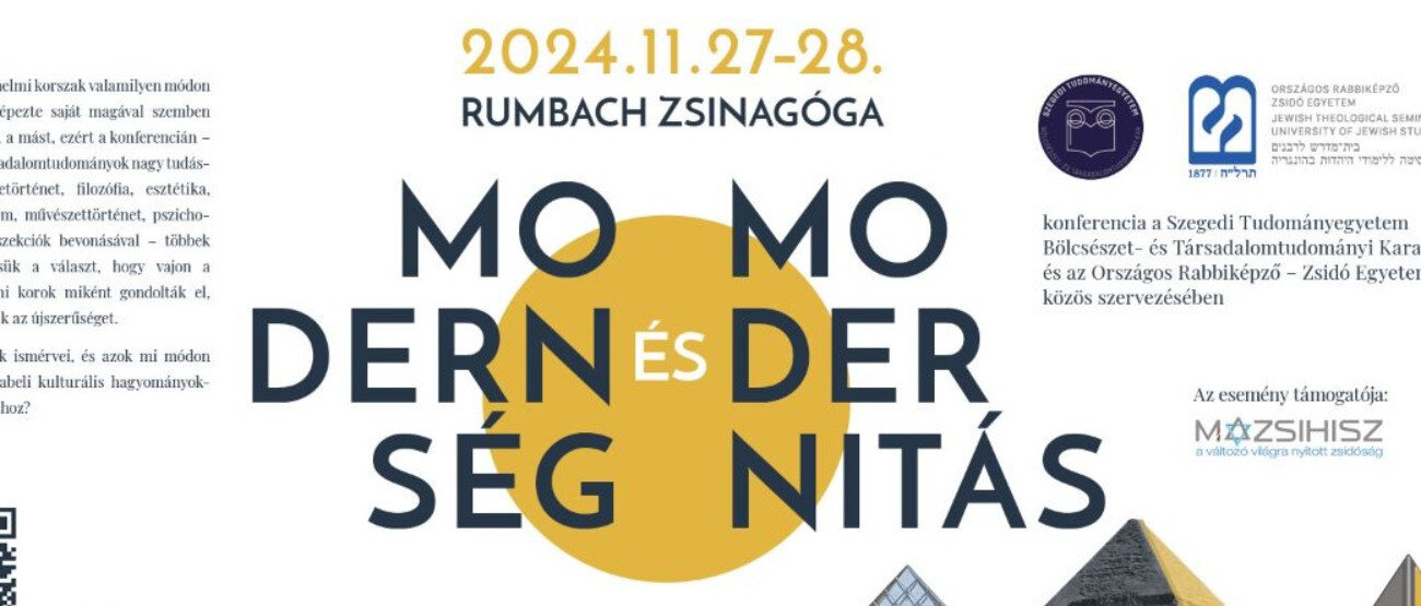 Modernség és modernitás címen konferenciát rendez az Országos Rabbiképző – Zsidó Egyetem és a Szegedi Tudományegyetem Bölcsészet- és Társadalomtudományi Kara 2024. november 27-28-án, a Rumbach Zsinagógában.