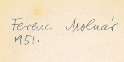 Molnár Ferenc aláírása a zsidó menekültek törzshelyén 1951-ből