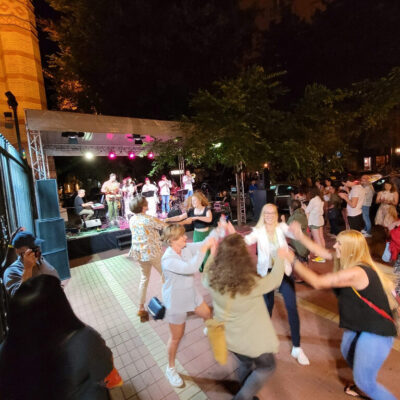 Este 11 órától a „judeo folk-rock” zenét játszó Hamsa zenekaré volt a Dohány zsinagóga előtt felállított színpad, és a banda olyan lendülettel vetette bele magát a zenélésbe, hogy a lelkesedésük hamarosan a közönségre is átragadt: olyannyira, hogy a színpad előtt hamarosan fergeteges tánc kezdődött. Megérdemlik, hogy megemlítsük a zenészek nevét, már csak azért is, mert ha a közeljövőben egy programszervezőnek azon járna az esze, hogy  ősi zsidó és közel-keleti dallamokat modern hangszerelésben megszólaltató együttest akar meghívni, akkor tudja, hogy kiket kell keresnie. A Hamsa tagjai tehát Kuna Valéria és Kata (ének), Kuna Bence (ének, kürt, ütőhangszerek), Kuna Gyula (trombita), Kuna Márton (harsona), Somos András (billentyűs hangszerek), Éder Ferenc „Lá” (basszusgitár) és végül a doboknál: Fábry Adonisz. Szóval név szerint ők voltak azok, akik még jóval éjfél után is olyan bulit csaptak a sokat látott zsinagóga előtt, hogy legszívesebben máris meghívnánk őket a 2023-as múzeumi éjszakára is.