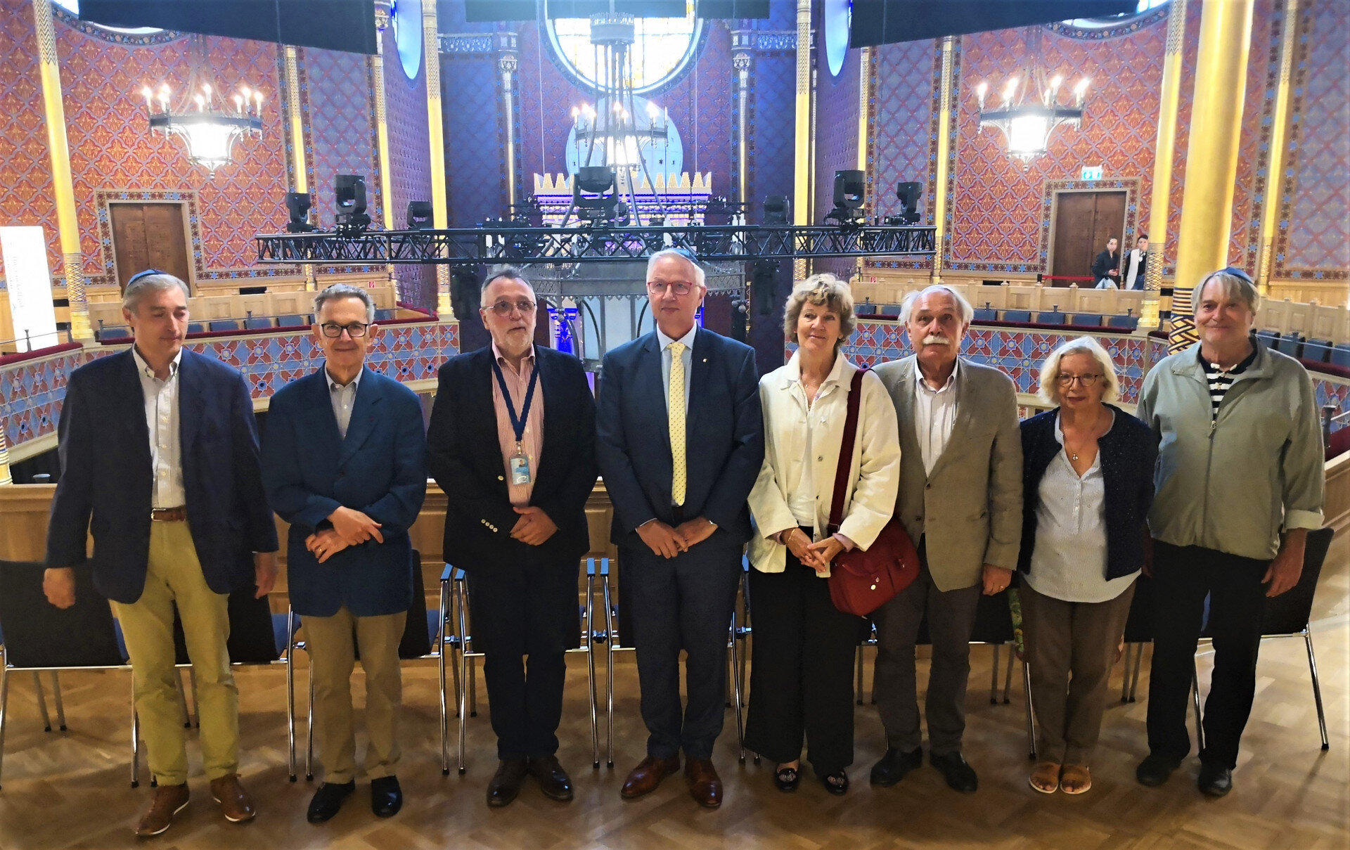 Trócsányi László európai parlamenti képviselő és korábbi igazságügyi miniszter vezetésével nemzetközi delegáció tett látogatást ma a Rumbach Sebestyén utcai zsinagógában. A vendégek megtekintették a helyreállított épületet, majd megbeszélést folytattak Heisler Andrással, a Magyarországi Zsidó Hitközségek Szövetsége (Mazsihisz) elnökével.