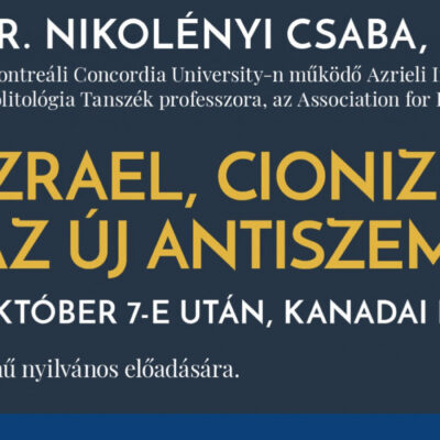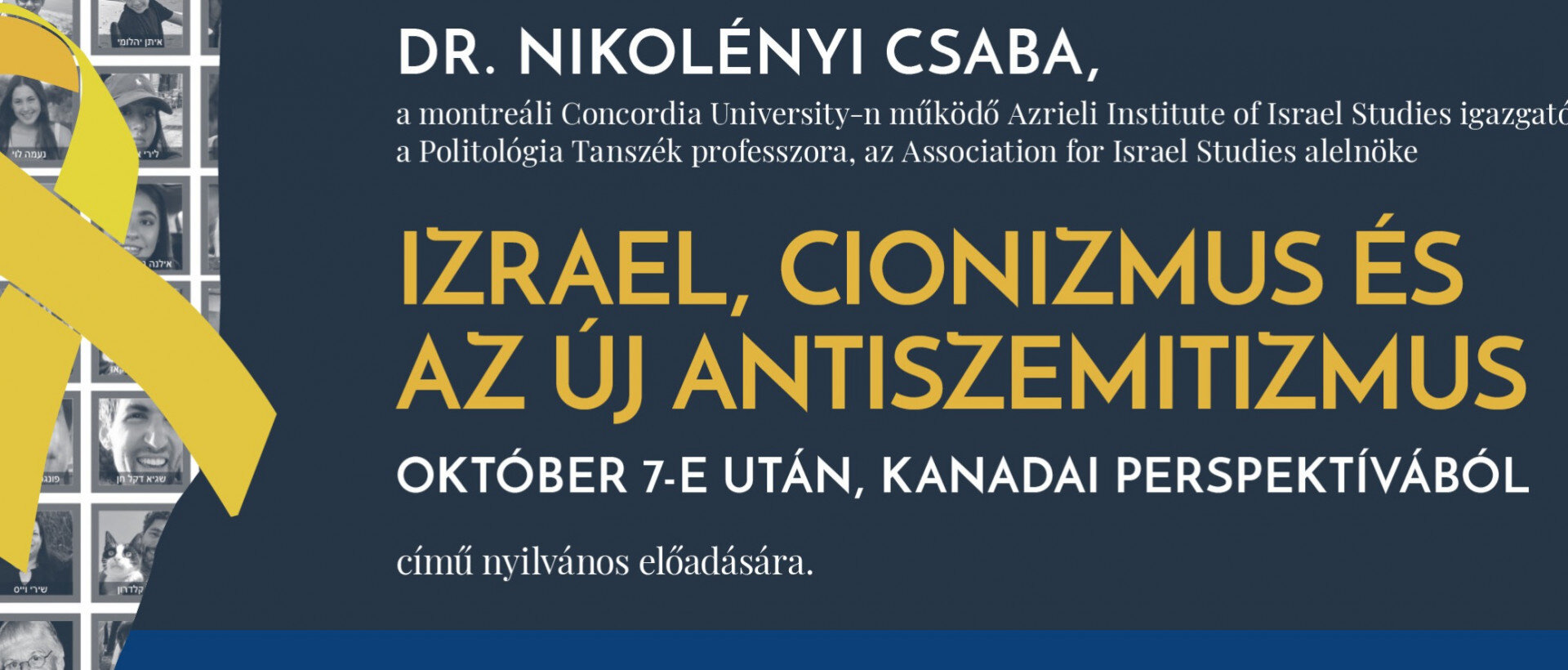 Az OR-ZSE és a JCC Budapest – Bálint Ház tisztelettel meghív minden érdeklődőt Dr. Nikolényi Csaba, a montreáli Concordia University-n működő Azrieli Institute of Israel Studies igazgatója, a Politológia Tanszék professzora, az Association for Israel Studies alelnöke nyilvános előadására: