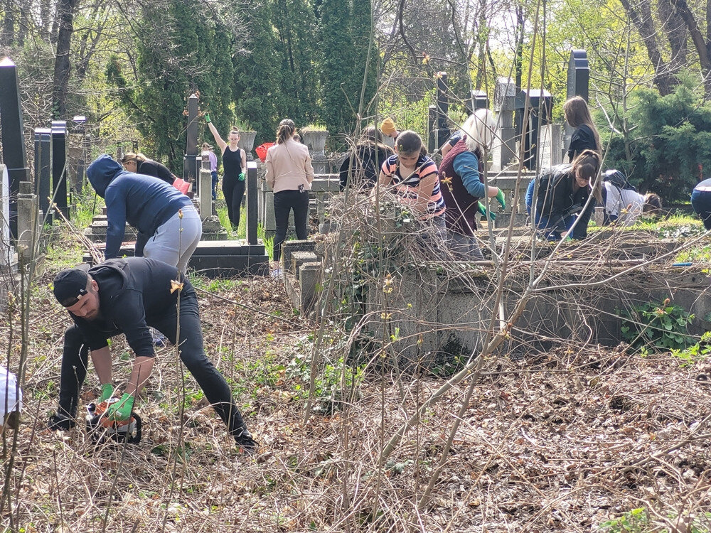A holokauszt magyarországi áldozatainak április 16-i emléknapja alkalmából Salusinszky András, a BZSH Külkereskedelmi Technikumának igazgatója gondolt egy merészet, s azt találta ki: a szokványos iskolai megemlékezések helyett most azzal tisztelegnek a mártírok emléke előtt, hogy részt vesznek az óbudai zsidó temető rendbetételében. Tegnap közel kétszáz diák és több tanár órákon át szorgoskodott a temetőben, több konténernyi száraz gallyat összegyűjtve.