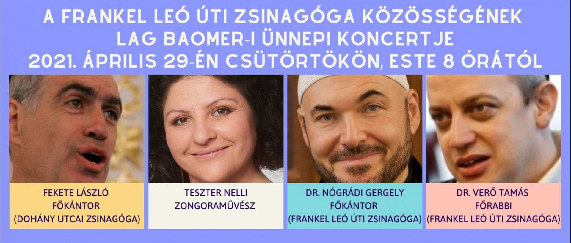 A koncertet a Frankel Leó úti Zsinagóga főrabbija, dr. Verő Tamás ünnepi gondolatai vezetik fel.