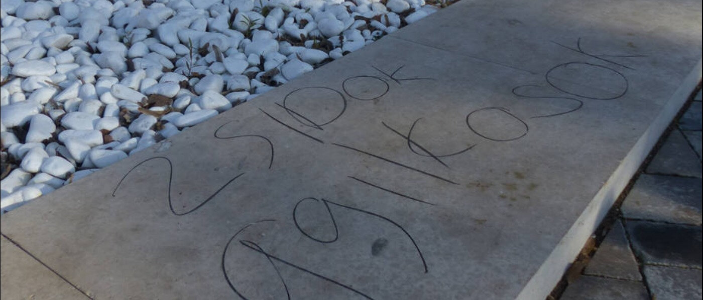 A makói zsidó emlékjel az egykor volt neológ zsinagóga helyén, a Csanád vezér téren, közvetlenül a makói rendőrkapitányság épülete előtt áll – ennek ellenére valaki összefirkálta. Fekete betűkkel, feltehetően grafittal azt írták a Dávid-csillagot formázó talapzatra, amelynek középpontjában a zsinagóga épületét megidéző szobor áll, hogy „zsidók gyilkosok”. Információink szerint egyszer, néhány hónapja már írtak rá egy hasonlót, de a városgazdálkodás hamar letakarította.