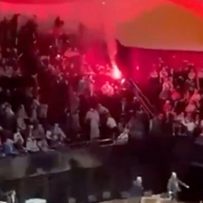 koncerttermében történt, amikor a tüntetők füsttel és tűzzel töltötték meg a