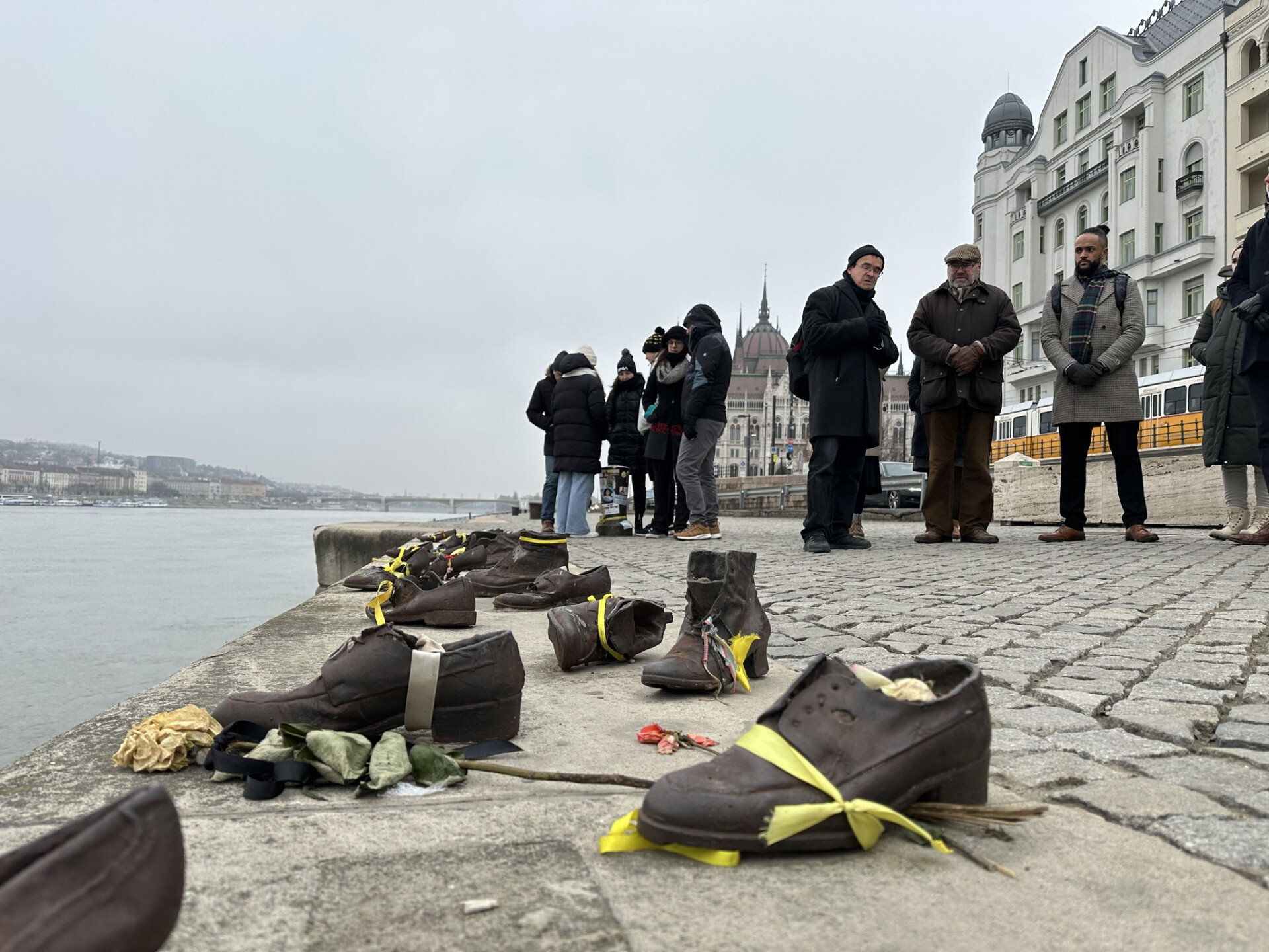 Paul Fox brit nagykövet és munkatársai budapesti holokauszt-emléksétán