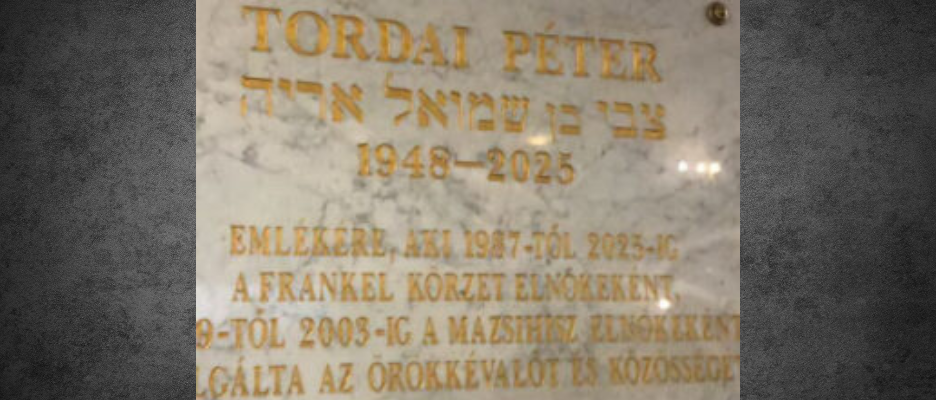 Idén február 1-jén hunyt el Tordai Péter, a Budapesti Zsidó Hitközség (BZSH) és a Magyarországi Zsidó Hitközségek Szövetsége (Mazsihisz) korábbi elnöke, valamint a Frankel Leó úti zsinagóga világi vezetője. Tiszteletére 2025. június 20-án, pénteken, az este fél hétkor kezdődő Szombatfogadás után emléktáblát avatnak a Frankel zsinagóga falán.