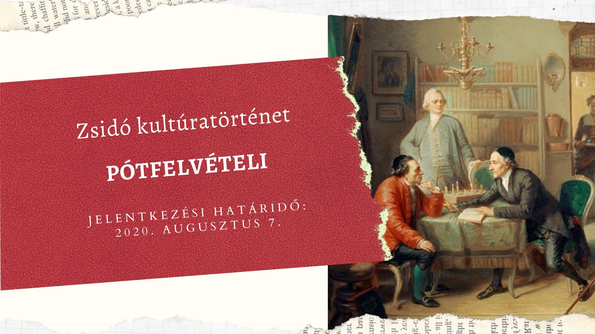 Pótfelvételi a Zsidó kultúratörténet mesterképzésre