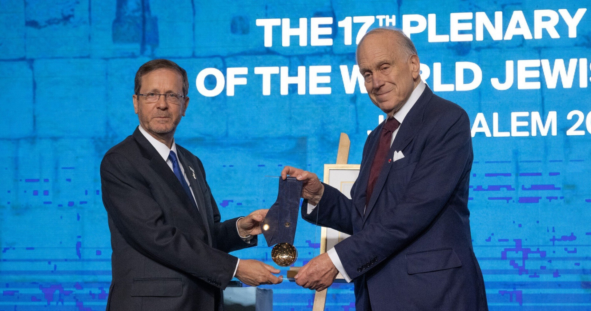 A WJC vezetőjének beszédét különleges ünnepség előzte meg, amelyen Izrael állam elnöke, Jichák Herzog átadta Laudernek az ország elnöki kitüntetését, elismerve több évtizedes elkötelezettségét Izrael és a zsidó nép iránt. Laudernek a zsidó világ számára tett óriási hozzájárulásáról Herzog elnök így szólt: