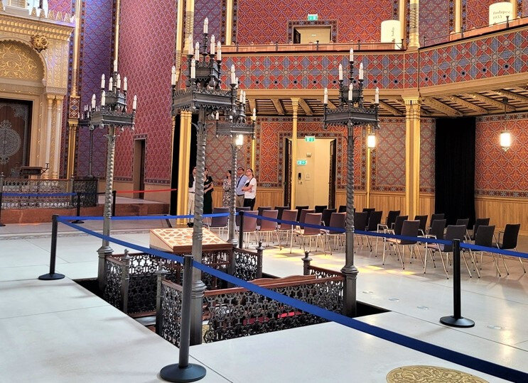 Akik már ismerik az 1872. október elsején fölavatott, majd az elmúlt években lezajlott felújítása után 2021-ben ünnepélyesen újra átadott Rumbach zsinagógát, azok tudják: a szakrális tér közepén elhelyezett Tóraolvasó emelvény szükség esetén a padlószint alá süllyeszthető, így lehetővé válik olyan rendezvények megtartása is, amelyeket a bima esetlegesen akadályozna.