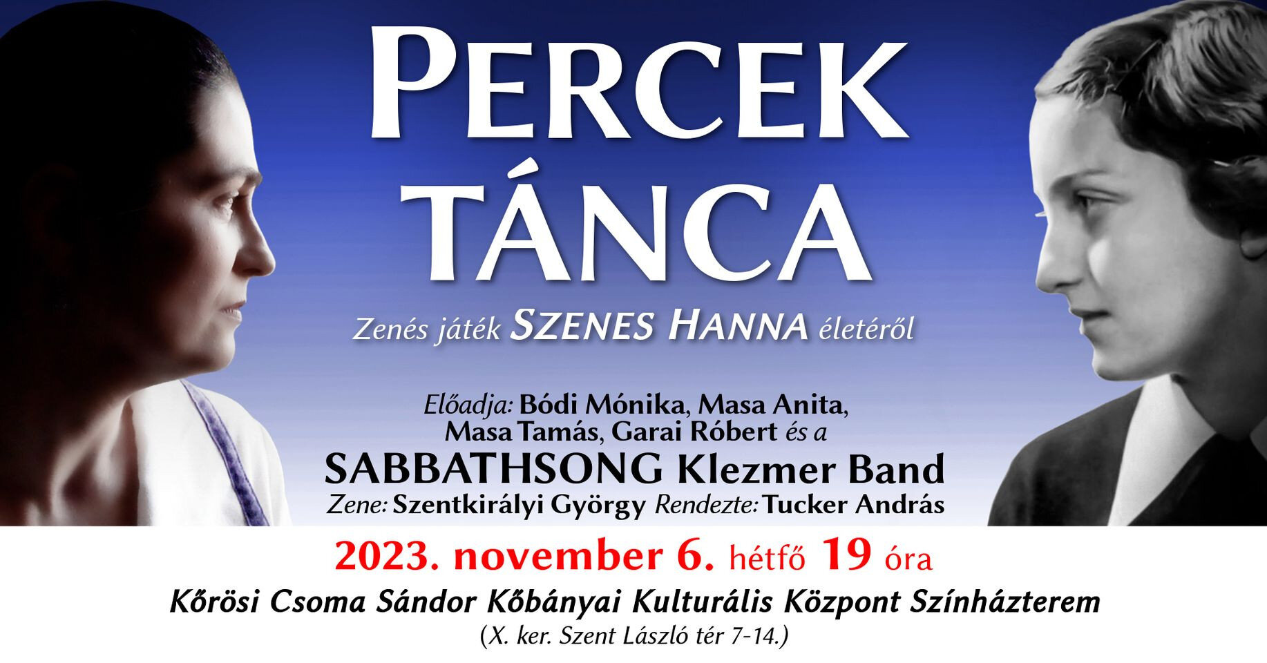 A Percek tánca című zenés játék Szenes Hanna kivégzett költő életéről szól, megismerhető általa e fiatal lány tragikusan rövid élettörténete, Izrael állam megszületésében való tevékeny munka, s a nézők bepillantást nyerhetnek az 1930-as évek légkörébe, azokba a folyamatokba, amelyek révén törvényerőre emelkedhetett az embertelenség.