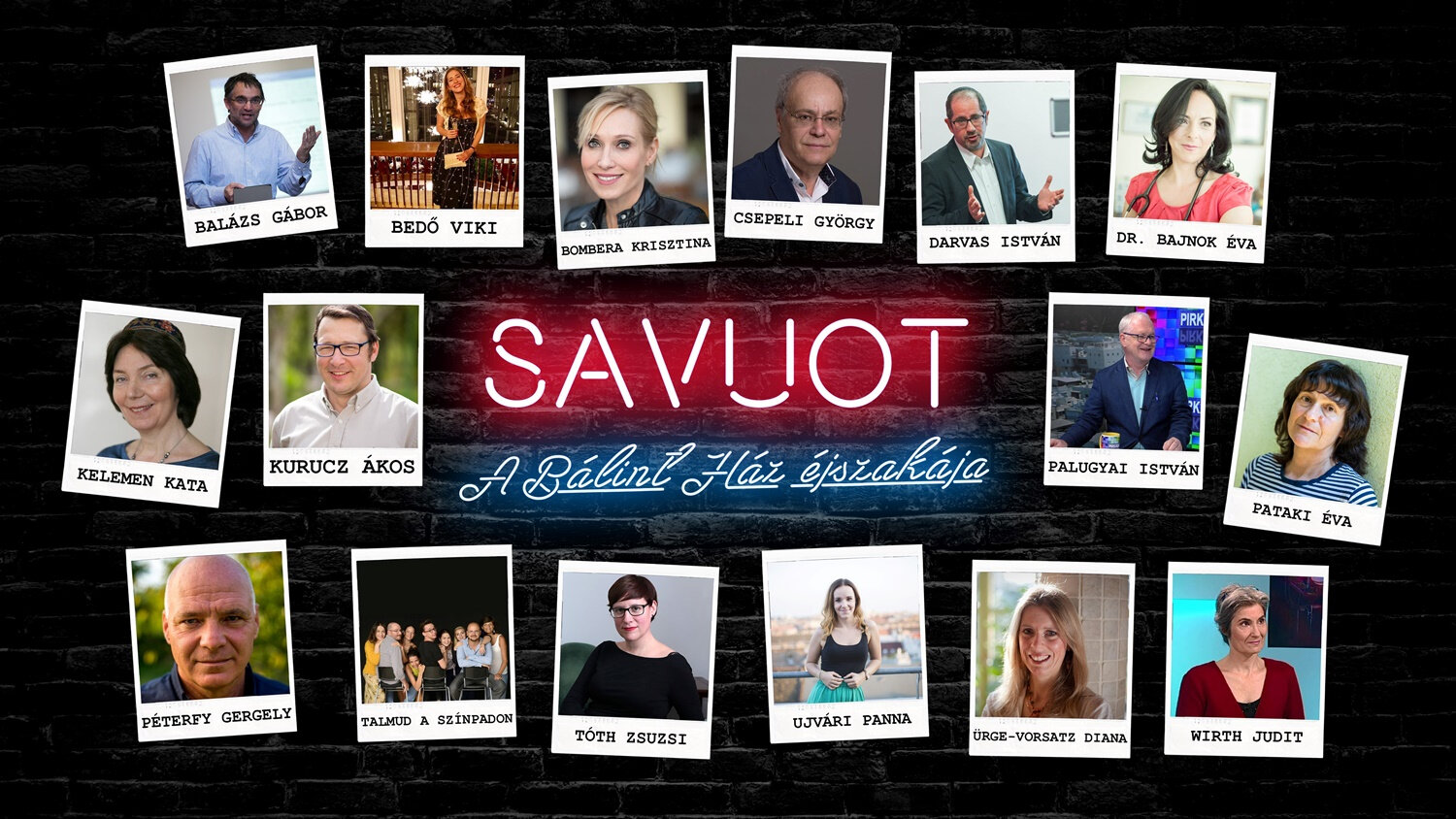 Akik már biztosan velünk lesznek: Dr. Bajnok Éva, Balázs Gábor, Bedő Viktória, Bombera Krisztina, Buzás Endre, Csepeli György, Darvas István rabbi, Itt és Most Társulat, Kelemen Katalin rabbi, Kurucz Ákos, Palugyai István, Pataki Éva, Péterfy Gergely, Tóth Zsuzsanna, Ujvári Panna, Ürge-Vorsatz Diána, Wirth Judit és TE.