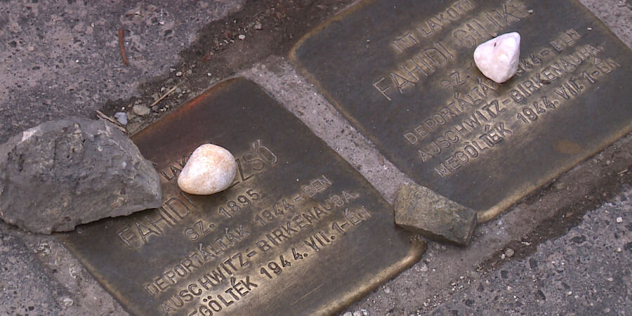 A botlatókövek felhívják a figyelmet arra, hogy itt valamikor egy zsidó ember lakott, akit deportáltak és meggyilkoltak – mondta el a megemlékezésen Fohn György szervező. (Forrás: dehir.hu)