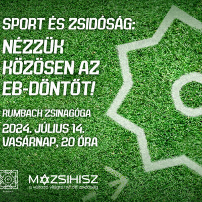 Két évvel ezelőtt a futball világbajnokság döntőjét, most pedig az EB mindent eldöntő mérkőzését nézhetjük meg közösen a Rumbach Sebestyén utcai zsinagógában. A „Sport és zsidóság” című rendezvényen lesz közös szurkolás, tanulás és persze rabbi is. A vendégeket büfé várja, ahol a döntőben részt vevő országok nemzeti ételei lesznek kaphatóak – természetesen kóser változatban. A döntőt játszó csapatokat még nem ismerjük, de az időpontot igen: július 14-e, vasárnap este 8 óra. Szurkoljunk közösen!