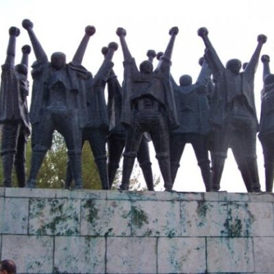 Az alkotás az egykori mauthauseni koncentrációs táborban felállított szobor feles mása, egy görög ellenálló alkotása. Mozgalmasságában és mozgalmiságában jól tükrözi a kor felfogását. A „vizafogói” emlékművet a MEASZ minden év február 12-én koszorúzza meg, idén azonban megemlékezésük a két választás közötti időszakra esett.