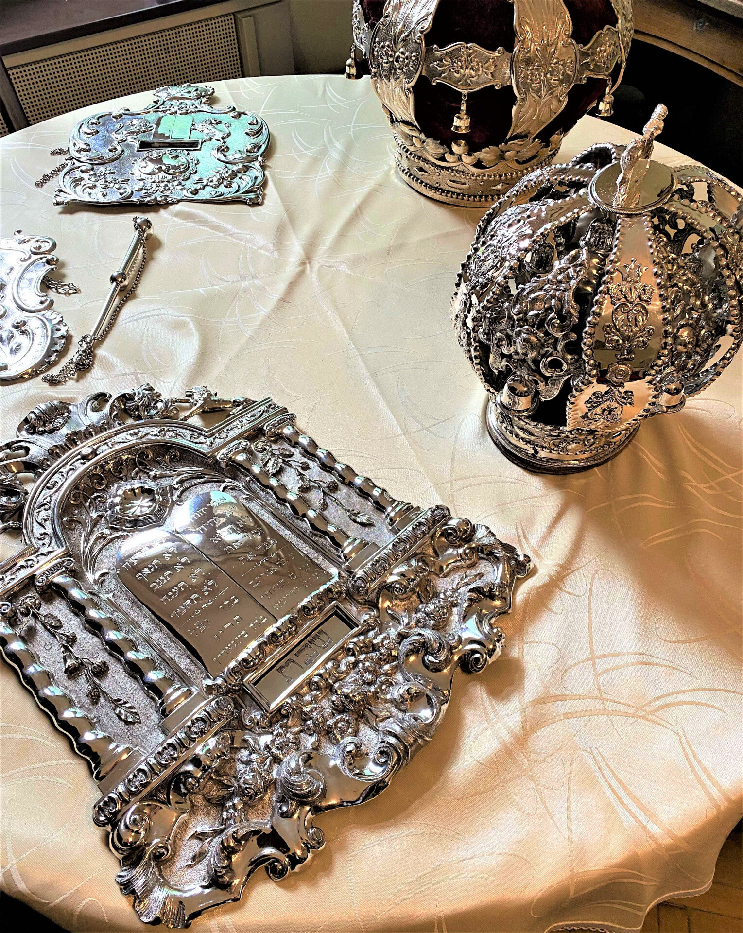 A Tóra-koronák közül azt vették használatba, amely 1902-1903-ban készült a zsinagóga avatására, míg a régebbit – amely 1857-es – csak ünnepnapokon veszik elő. A felújított Tóra-ékszerek közül az egyik pajzs a legrégebbi: 1852-ben készült, s ezt is csak ünnepnapon használják majd. Kendrusz Attila hozzátette: a közösség gazdagodott egy új Tóraruhával is, amit Halász Dávid adományozott a zsinagógának.