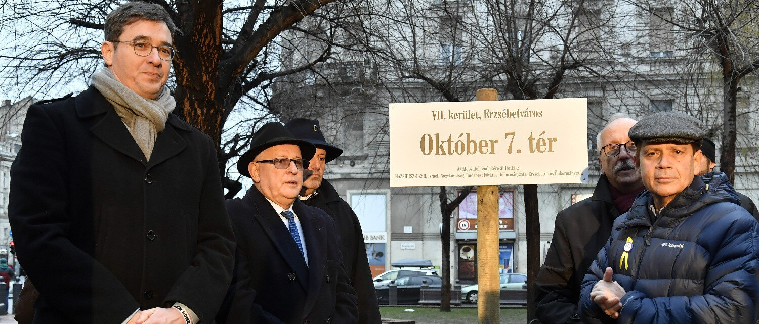 Dr. Grósz Andor, a Magyarországi Zsidó Hitközségek Szövetsége (Mazsihisz) elnöke a többi között ezekkel a gondolatokkal nyitotta meg január 7-én, az éppen három hónappal ezelőtti terrordámadás izraeli áldozataira emlékező, téravató ünnepséget. Ettől kezdve ugyanis két hétre a Dohány utcai zsinagóga előtti, Herzl Tivadar tér neve Október 7.-re változik.