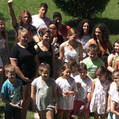 Közel hatvan gyermek élvezi a nyarat és Ica néni kóser kosztját a hűs árnyat adó lombok alatt. Miközben Borgula András videóklippet forgat velük a felnőttek az esti bát micvára díszítik a zsinagógát.