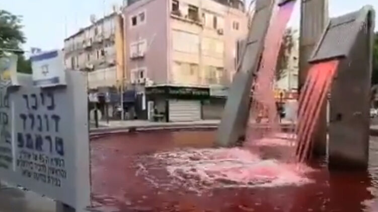 Izrael védelmében Vérvörösre festették tiltakozók az egyik izraeli település Trump terén álló szökőkút vízét 2020. június 29. - 13:15