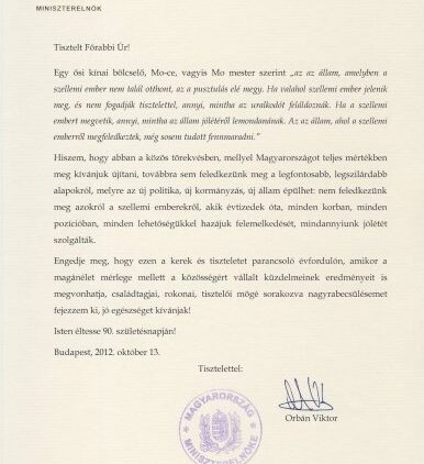 Mazsihisz hírek A miniszterelnök levélben köszöntötte a kilencvenéves Schweitzer Józsefet 2012. október 15. - 13:18
