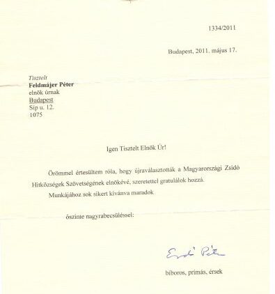 Mazsihisz hírek Erdő Péter bíboros, prímás érsek gratulált Zoltai Gusztávnak újraválasztása alkalmából 2011. május 27. - 10:22