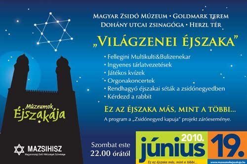 Mazsihisz hírek „Világzenei éjszaka” zenei és kulturális fesztivál a Múzeumok Éjszakáján 2010. június 2. - 22:27