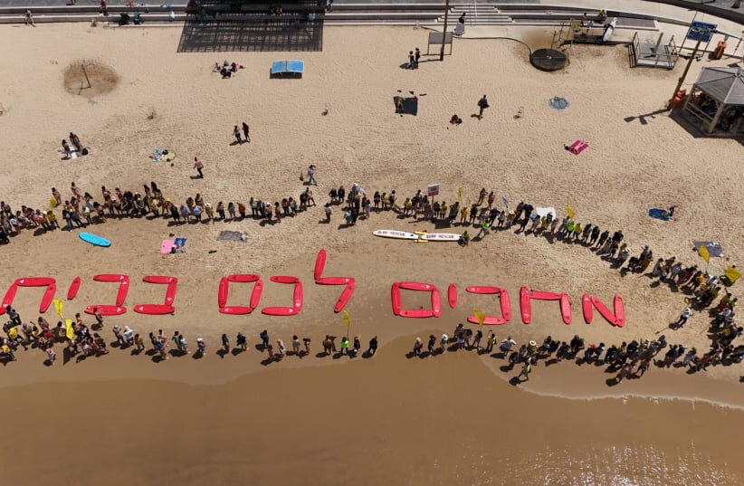 A Gázai övezet iszlamista terrorszervezet október 7-i terrortámadása óta az övezetben fogva tartott izraeli túszok családtagjai élőláncot szerveztek péntek délelőtt Izrael földközi-tengeri partjainak strandjain, melyen a Haifához közeli Habonim-parttól egészen a Tel-Avivtől délre fekvő Rison Leción strandjáig álltak a megállapodást követelők.