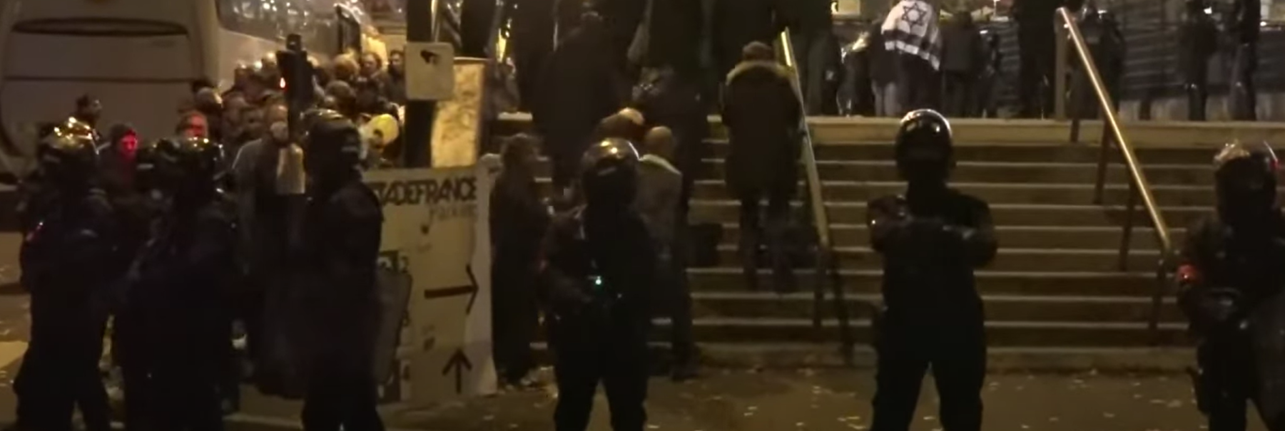 A Stade de France stadionban tegnap a rendőrökön kívül 1600 biztonsági őr teljesített szolgálatot, és egy terrorelhárító elitalakulaz is védte az izraeli játékosokat és a szurkolókat egy esetleges támadástól. Az óriási készültség meghozta az eredményét: nem történt atrocitás. Igaz, a két szurkolótáborból néhány tucat drukker a 20. percben egymásnak esett, a rendet a rendőrök és a biztonsági őrök pár perc alatt helyreállították. A mérkőzés 0:0-val zárult.