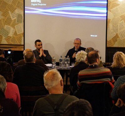 Az est egyik fontos mozzanata volt, hogy a közönség soraiból szólásra jelentkezett Karsai László (képünkön) történész, a kiváló Holokauszt-kutató, aki nem csak az Ungváry által sorolt források, tanúvallomások, adatok megbízhatatlansága mellett érvelt, hanem kétségbe vonta az azokból kikerekíthető hipotézist és rekonstrukciót is. Karsai szerint a két koronatanú, Szalai és Kubissy a kihallgatásaik során össze-vissza beszéltek, bizonyítható, hogy több alkalommal nem mondtak igazat, sőt, még az sem igaz, hogy Szalai telefonon beszélt volna Schmidhuber tábornokkal, elvégre nem is tudott németül. A történésznek az a véleménye, hogy megalapozatlan, zagyva tanúvallomások alapján Schmidhubert nem szabad piedesztálra emelni. Karsai László végső következtetése szerint Schmidhuber nem érdemel emléktáblát Budapesten, hiszen a példásnak mondott katonai tevékenységével éppen ahhoz járult hozzá, hogy a főváros minél tovább német kézben legyen, ami sokkal több halálos áldozatot követelt, mintha Schmidhuber föladta volna a már teljesen reménytelen harcot.