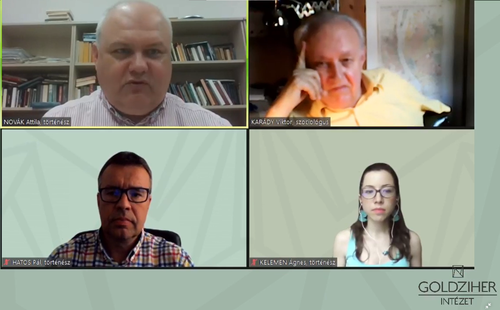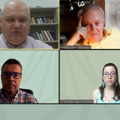 Az internetet közvetített rendezvényen Novák Attila történész, az intézet főmunkatársa Hatos Pál történésszel, Karády Viktor szociológussal és Kelemen Ágnes történésszel beszélgetett, a tudósok először Novák azon kérdését járták körbe, hogy Trianon idején miképpen fonódott össze a zsidóság sorsa a magyar államéval.